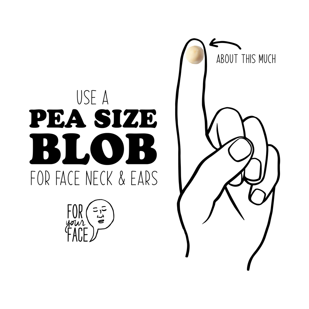 A pea size amount covers your face, neck & ears.